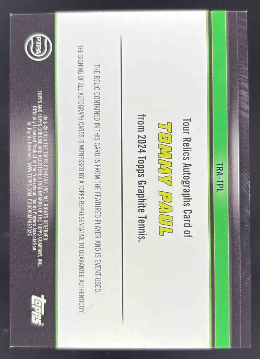 2024 Topps Graphite Tour Relic Pink Refractor #TRA-TPL Tommy Paul Auto /15