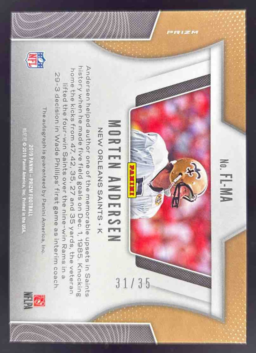 2019 Panini Prizm Flashback Green Scope #FL-MA Morten Andersen Auto /35