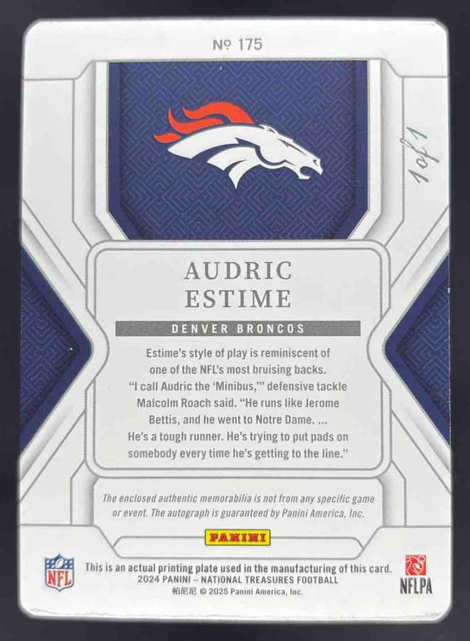 2024 National Treasures Rookie Patch Plates Black Audric Estime RC Auto 1/1