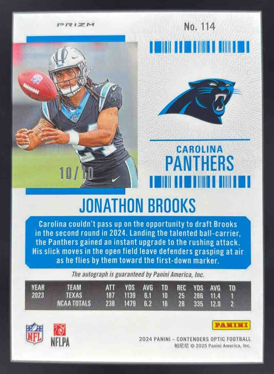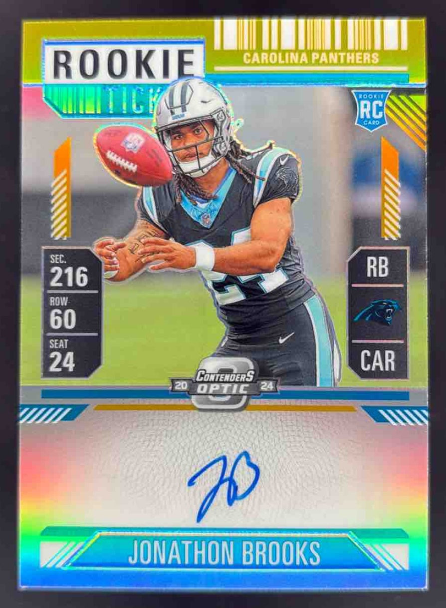 2024 Contenders Optic Rookie Ticket Gold Prizm #114 Jonathon Brooks RC Auto /10