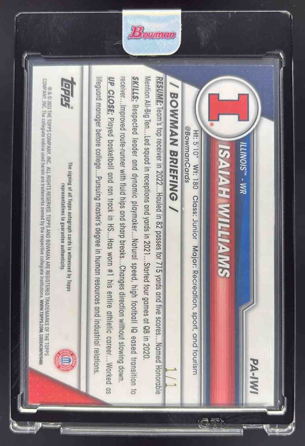 2023 Bowman University Chrome Sapphire Padpradascha Isaiah Williams Auto 1/1
