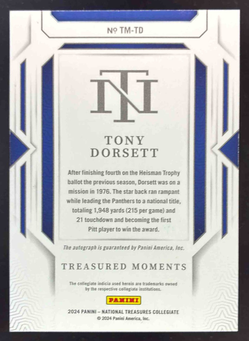 2024 National Treasures Collegiate Moments Signatures Tony Dorsett Auto /25