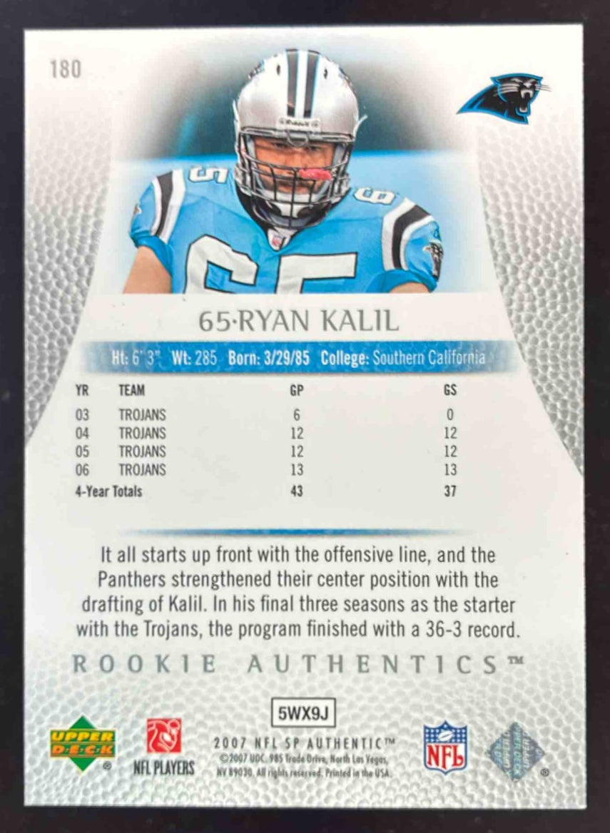 2007 SP Authentic #180 Ryan Kalil RC /999