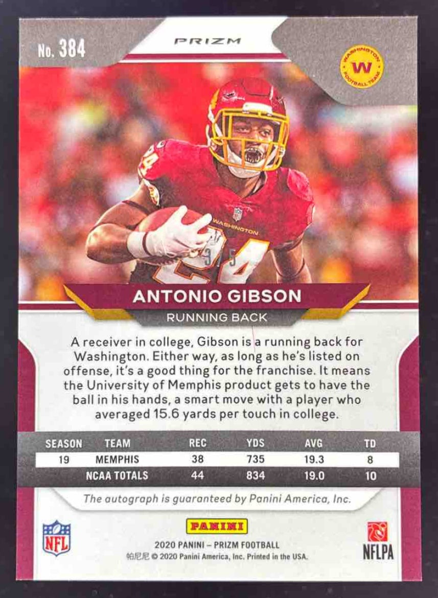 2020 Panini Prizm Rookie Autographs Gold Vinyl #384 Antonio Gibson RC Auto /5