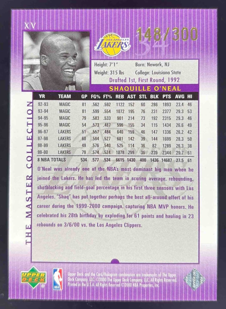 2000-01 Upper Deck Lakers Master Collection #XV Shaquille O'Neal /300