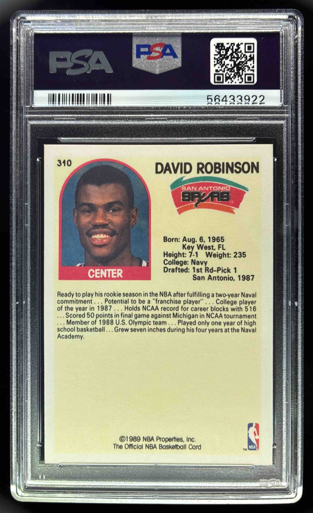 1989-90 Hoops #310 David Robinson RC PSA 8