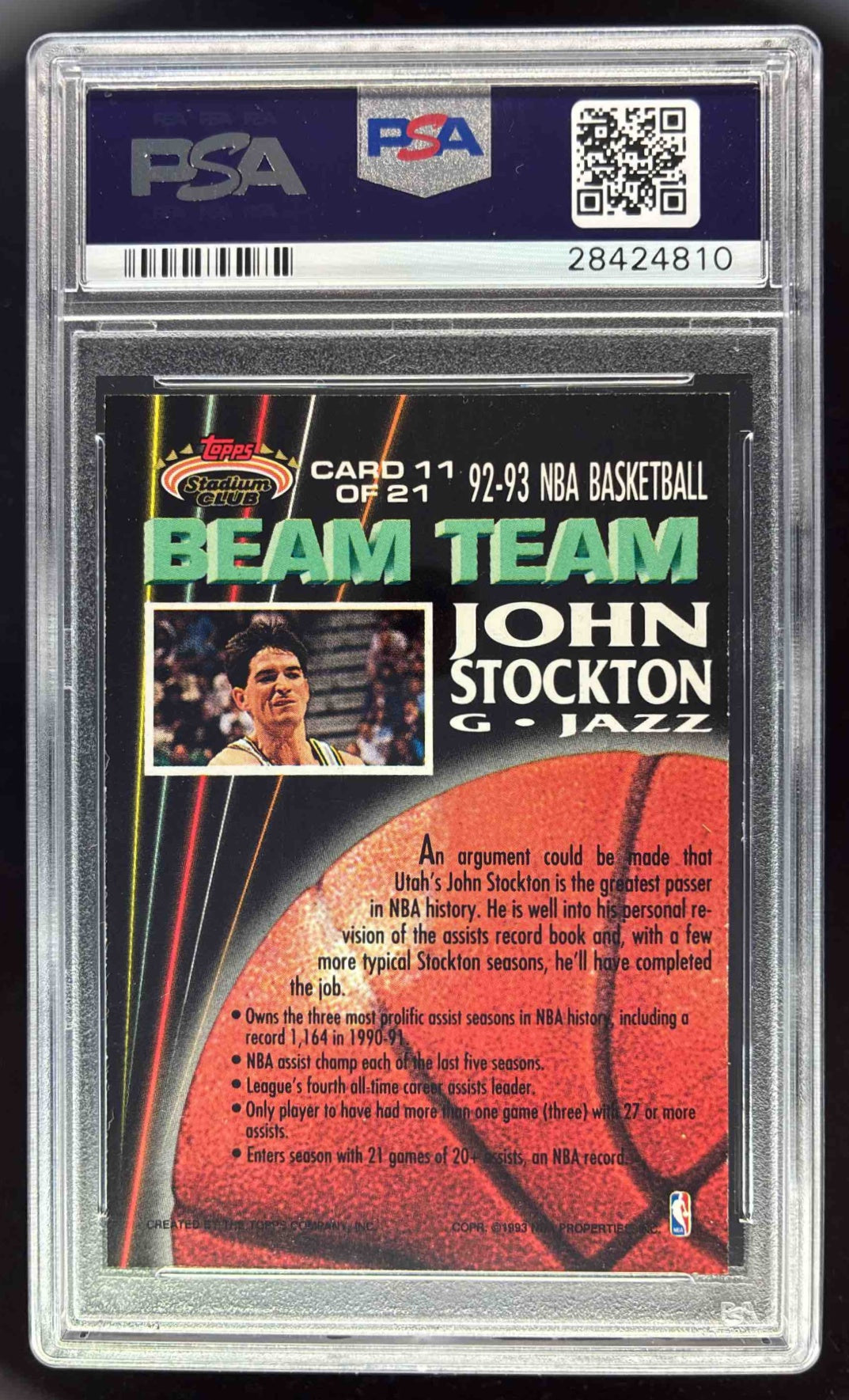 1992-93 Topps 93 Stadium Club Beam Team #11 John Stockton PSA 9