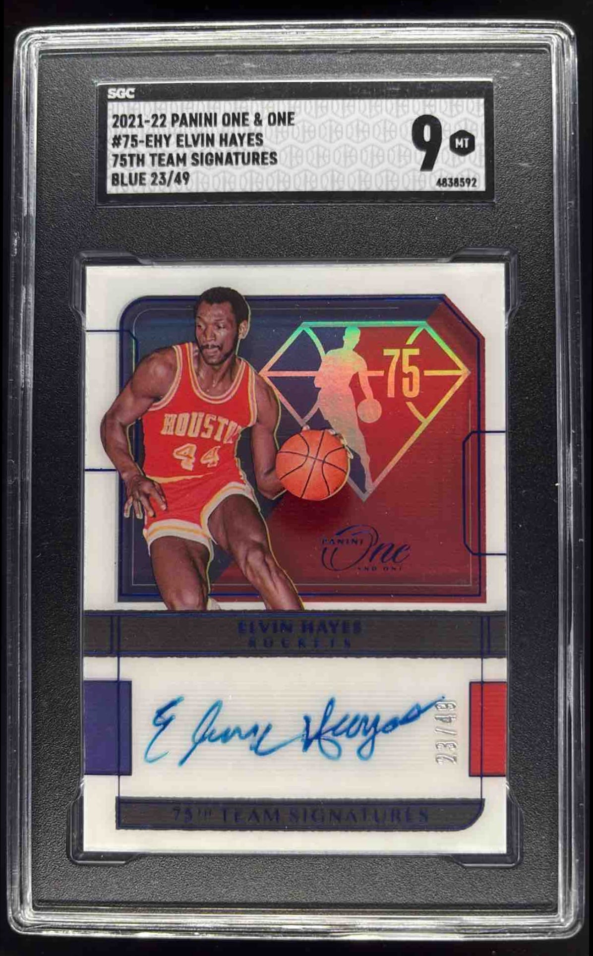 2021-22 Panini One and One 75th Team Blue #75-EHY Elvin Hayes Auto /49 SGC 9