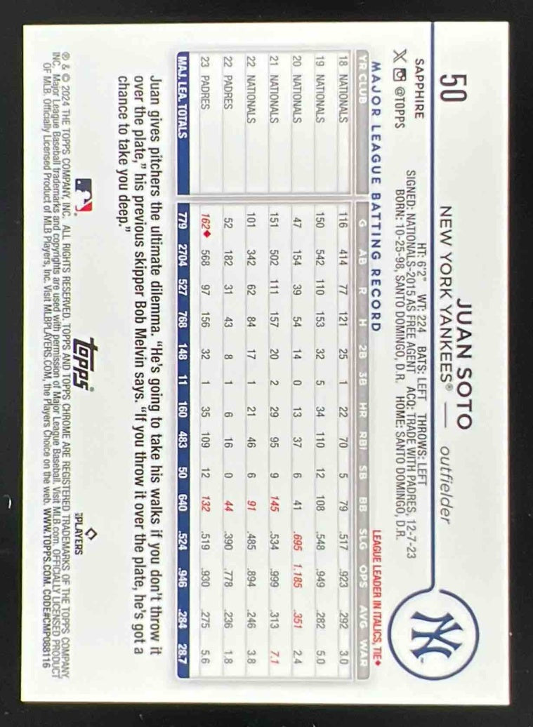 2024 Topps Chrome Sapphire Chrome Image Variations #50 Juan Soto