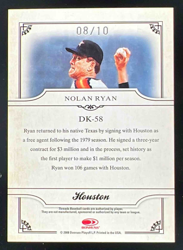 2008 Donruss Threads Diamond Kings Framed Black #DK-58 Nolan Ryan /10