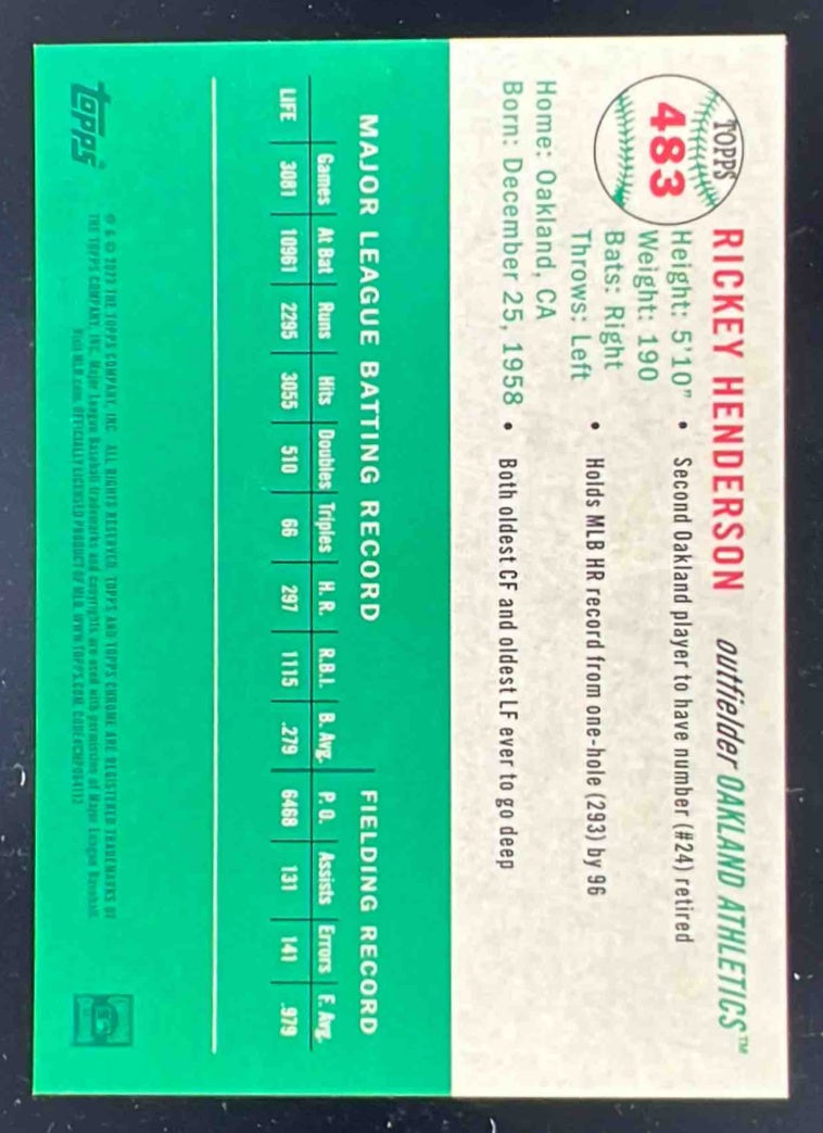 2022 Topps Chrome Platinum Anniversary Toile Cream/Black Rickey Henderson /10