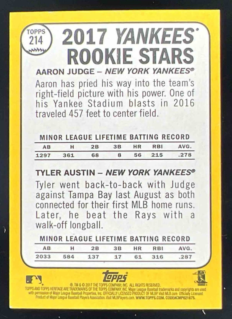 2017 Topps Heritage Chrome Purple Refractors #214 Aaron Judge Tyler Austin RC