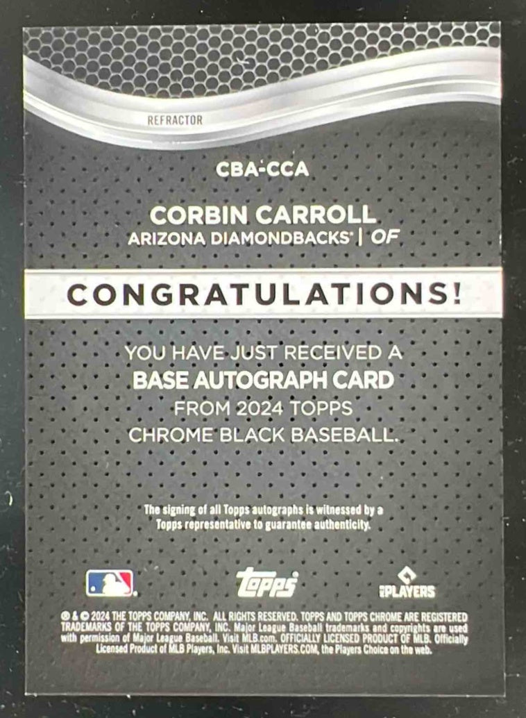 2024 Topps Chrome Black Chrome Black Refractors #CBACCA Corbin Carroll Auto /150