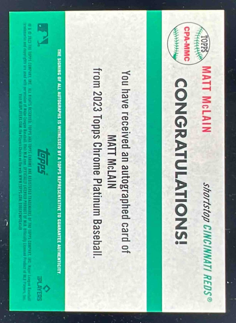 2023 Topps Chrome Platinum Anniversary Toile Cream/Blue Matt McLain RC Auto /99