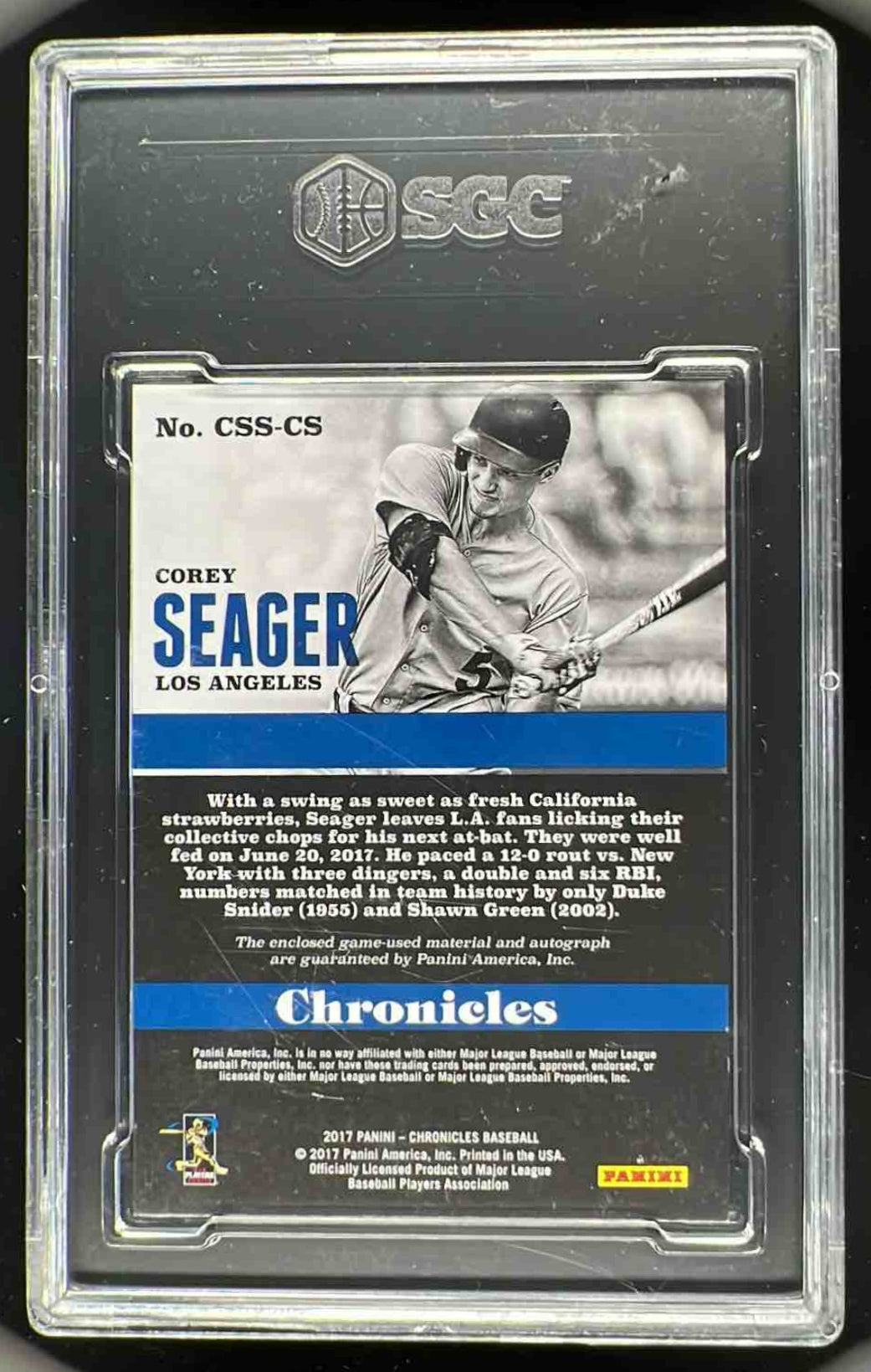2017 Chronicles Chronicles Swatches #CSS-CS Corey Seager Auto /25 SGC 8.5