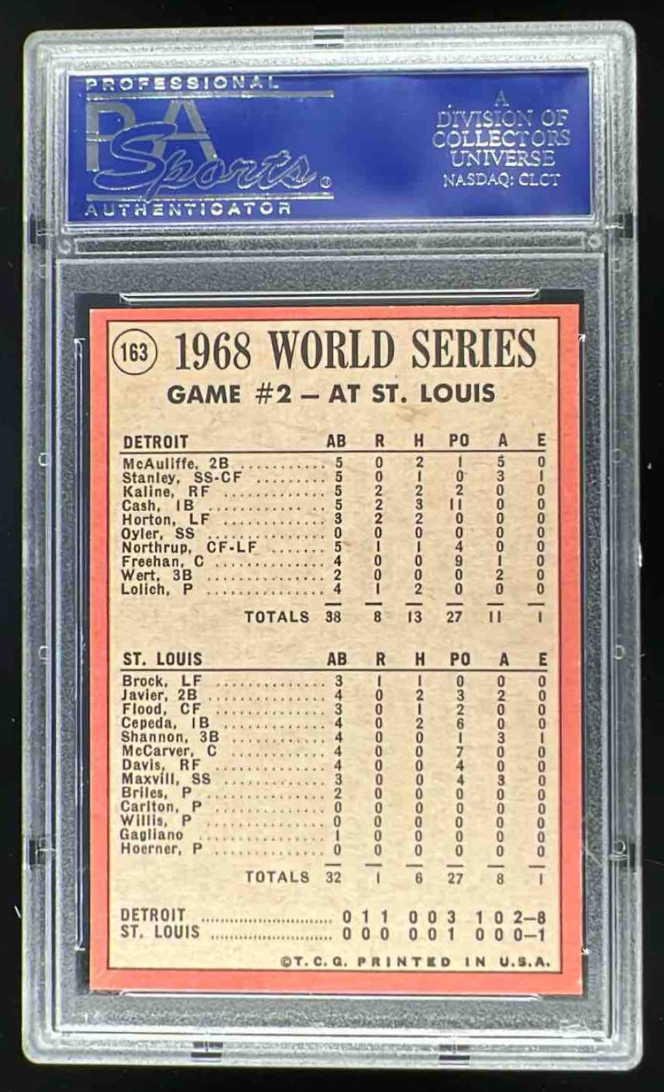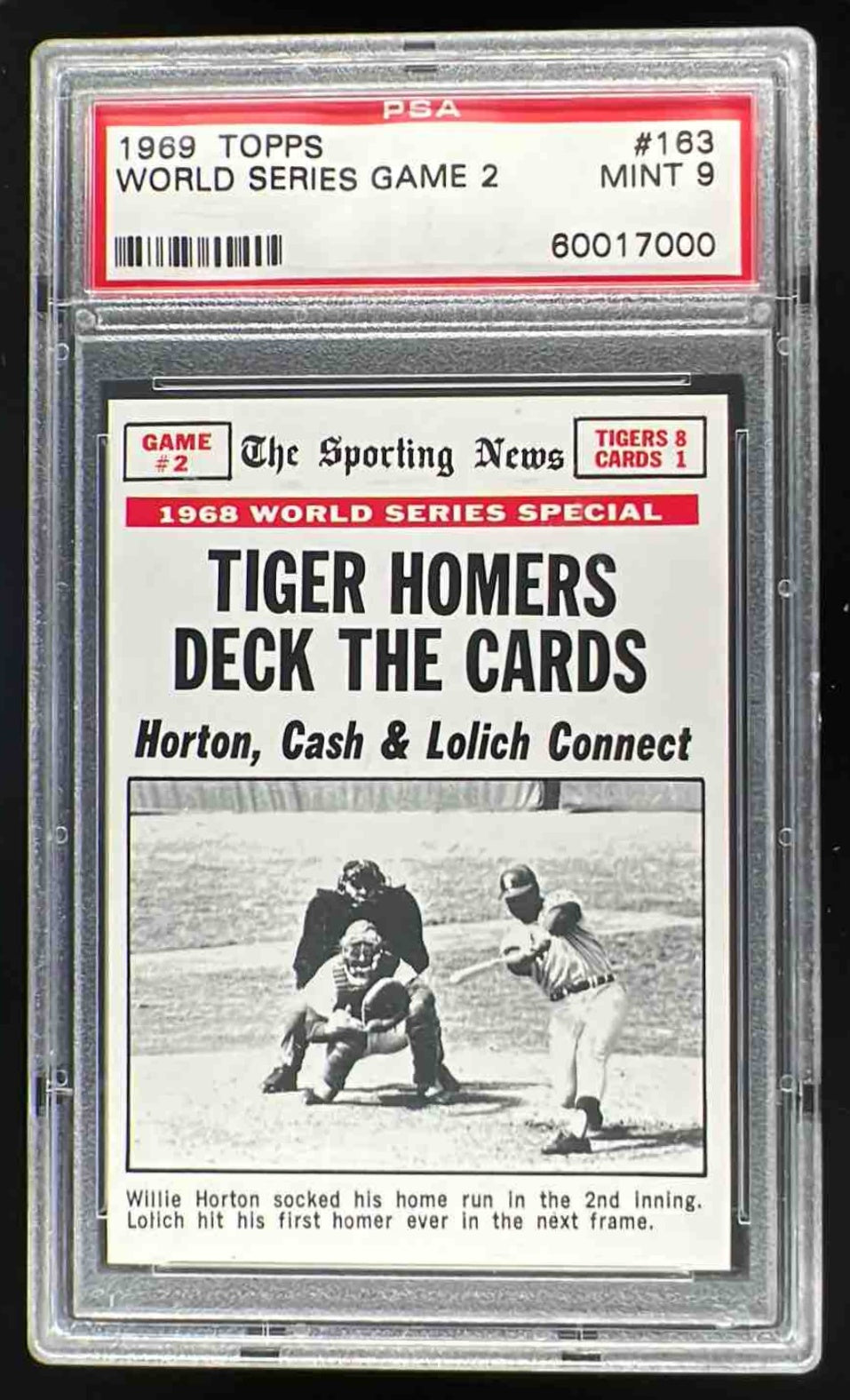 1969 Topps #163 World Series Game #2 - Tiger Homers Deck the Cards PSA 9