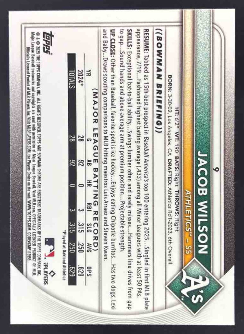 2025 Bowman Chrome Red RC Rookie Redemption #9 Jacob Wilson RC