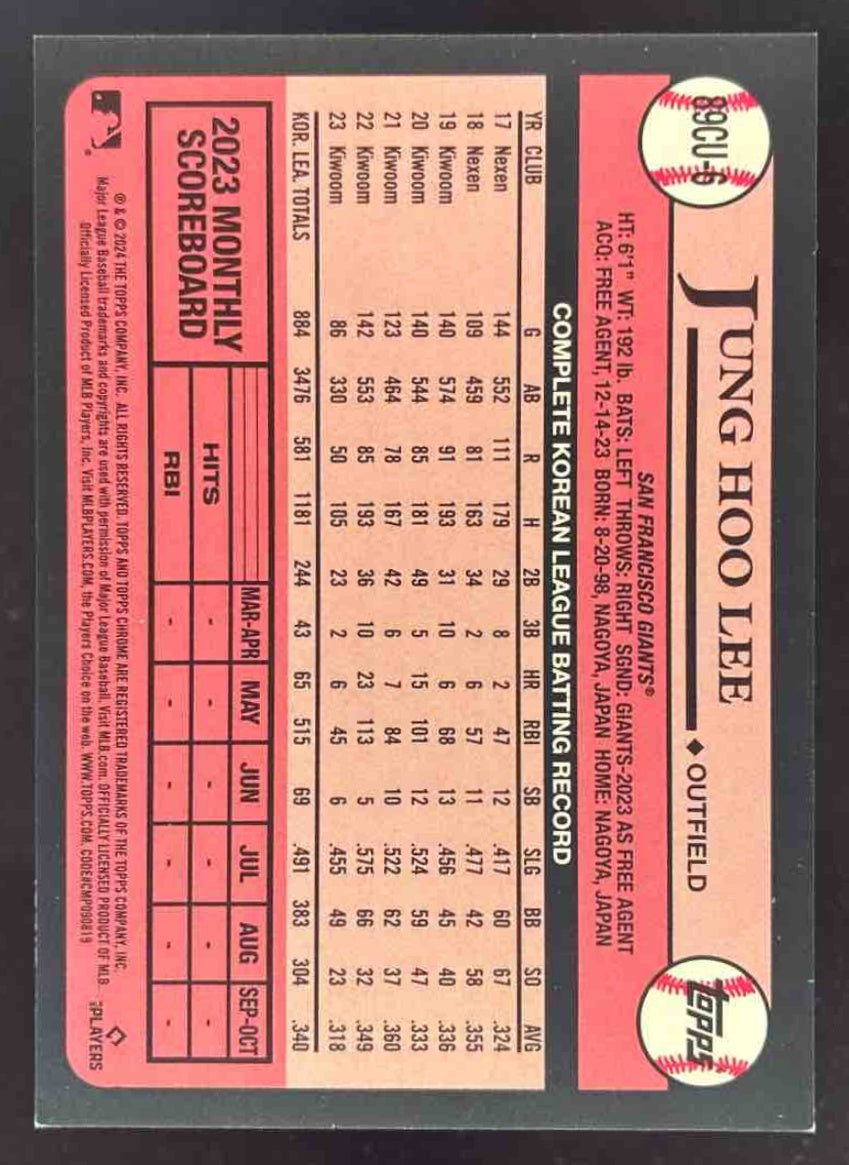 2024 Topps Chrome 1989 Orange Refractor #89CU-6 Jung Hoo Lee RC /25