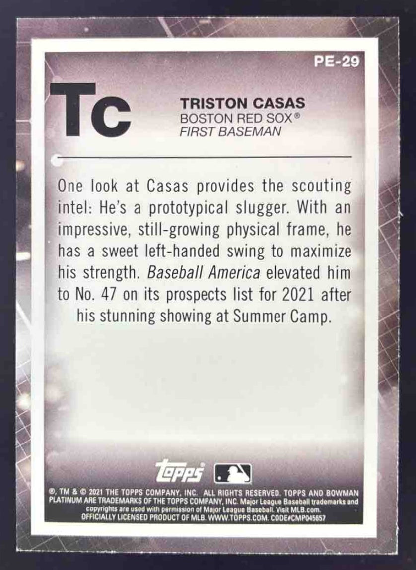 2021 Bowman Platinum Precious Elements Foilfractor #PE-29 Triston Casas 1/1