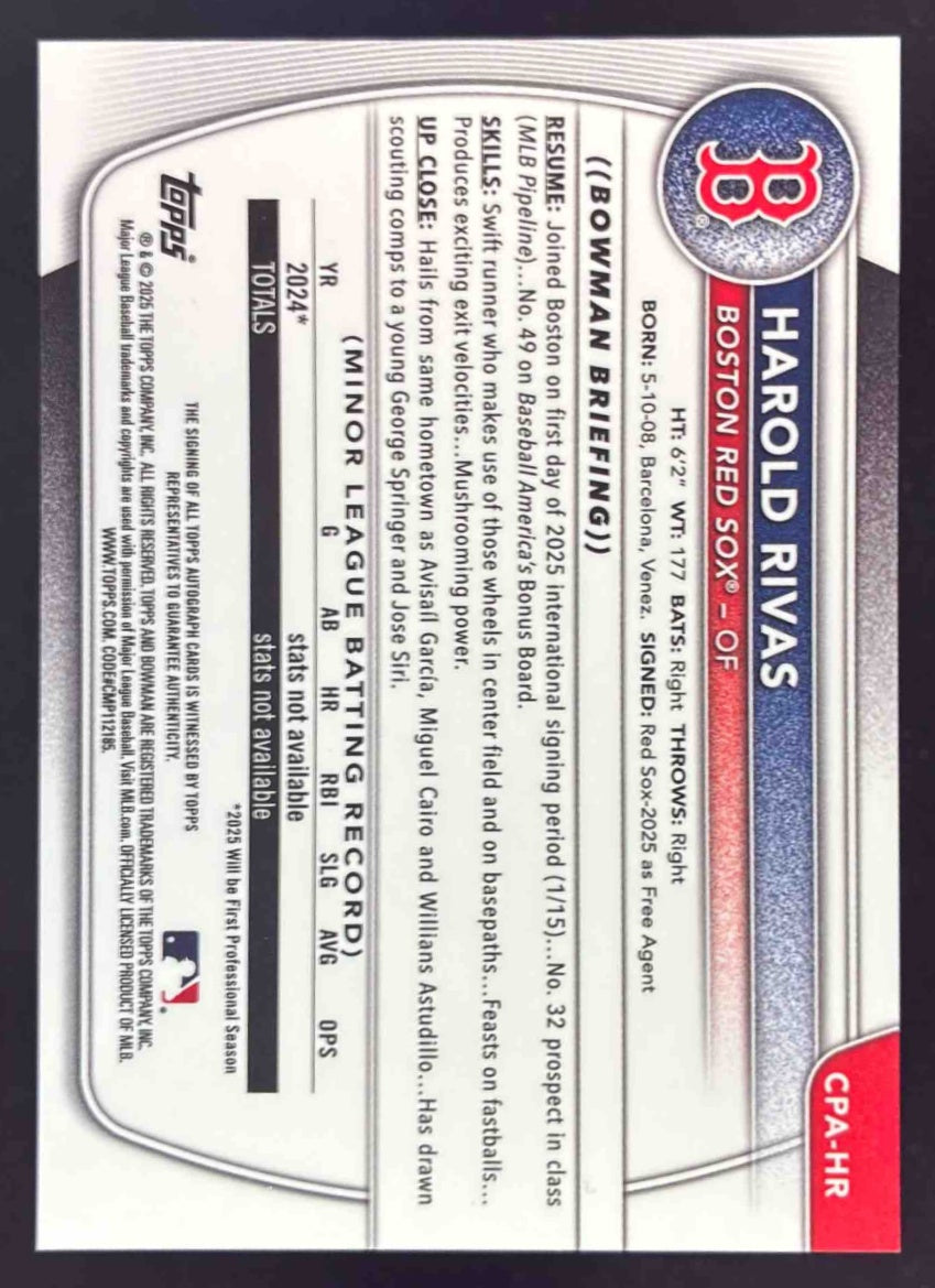 2025 Bowman Chrome Chrome Autograph #CPA-HR Harold Rivas RC Auto