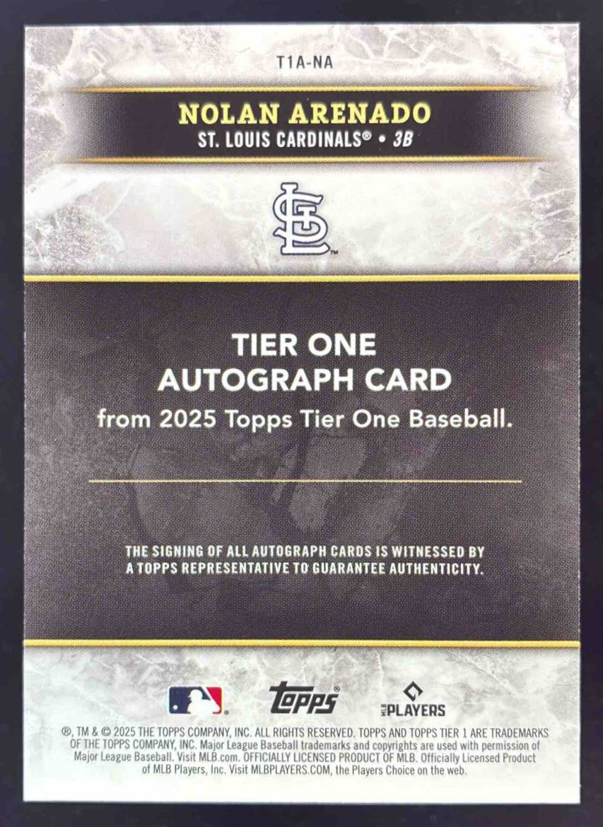 2025 Topps Tier One Tier One Autographs Red Foil #T1A-NA Nolan Arenado Auto /10