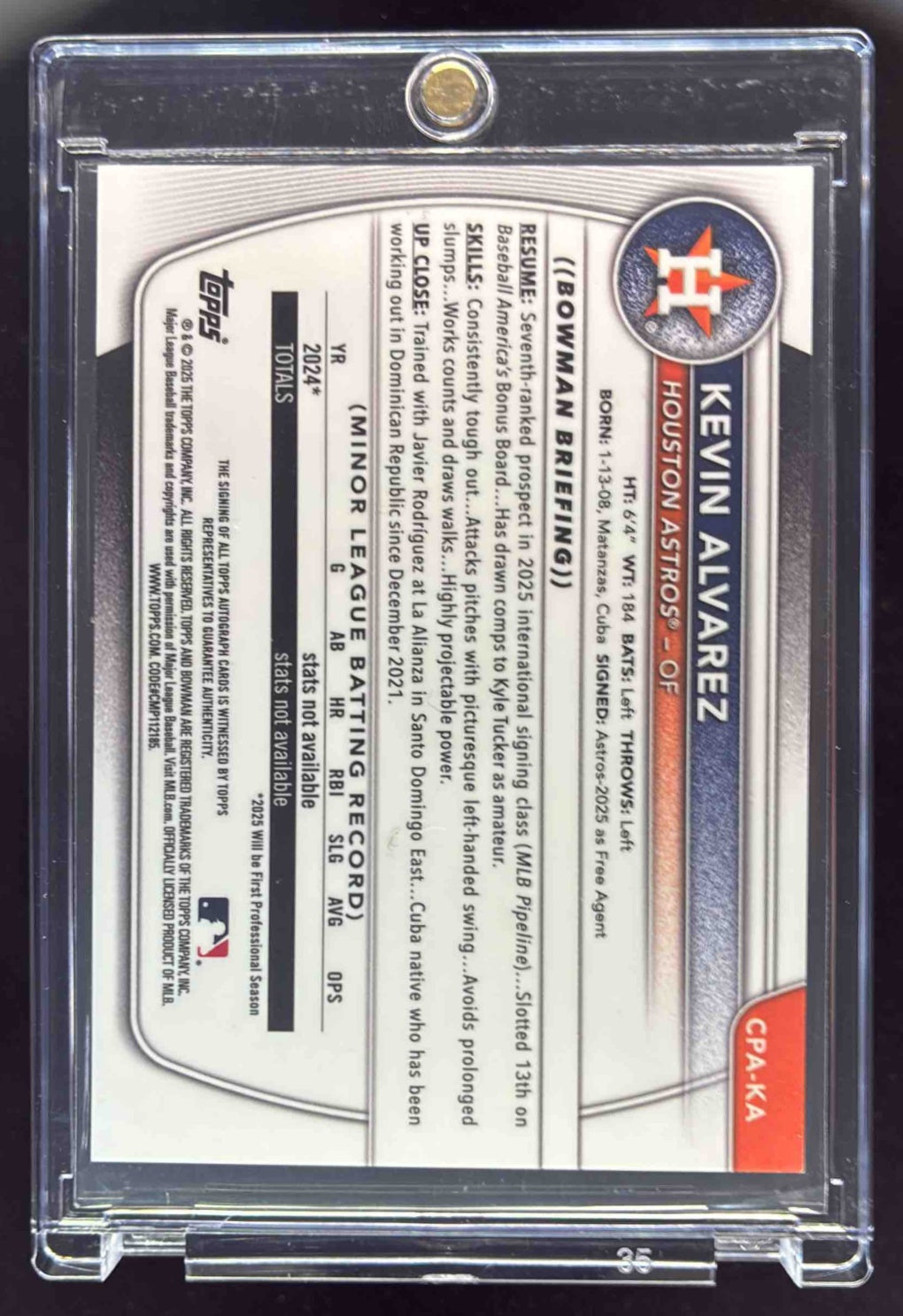 2025 Bowman Chrome Blue RayWave Refractor #CPA-KA Kevin Alvarez RC Auto /150