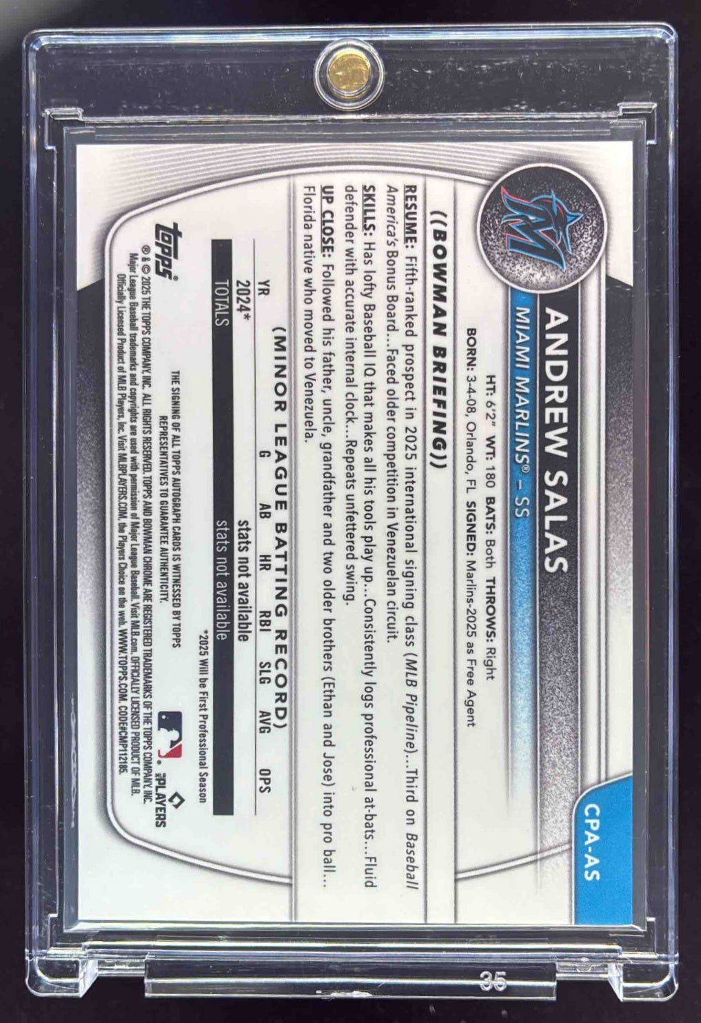 2025 Bowman Chrome Reptilian Green Refractor #CPA-AS Andrew Salas RC Auto /99