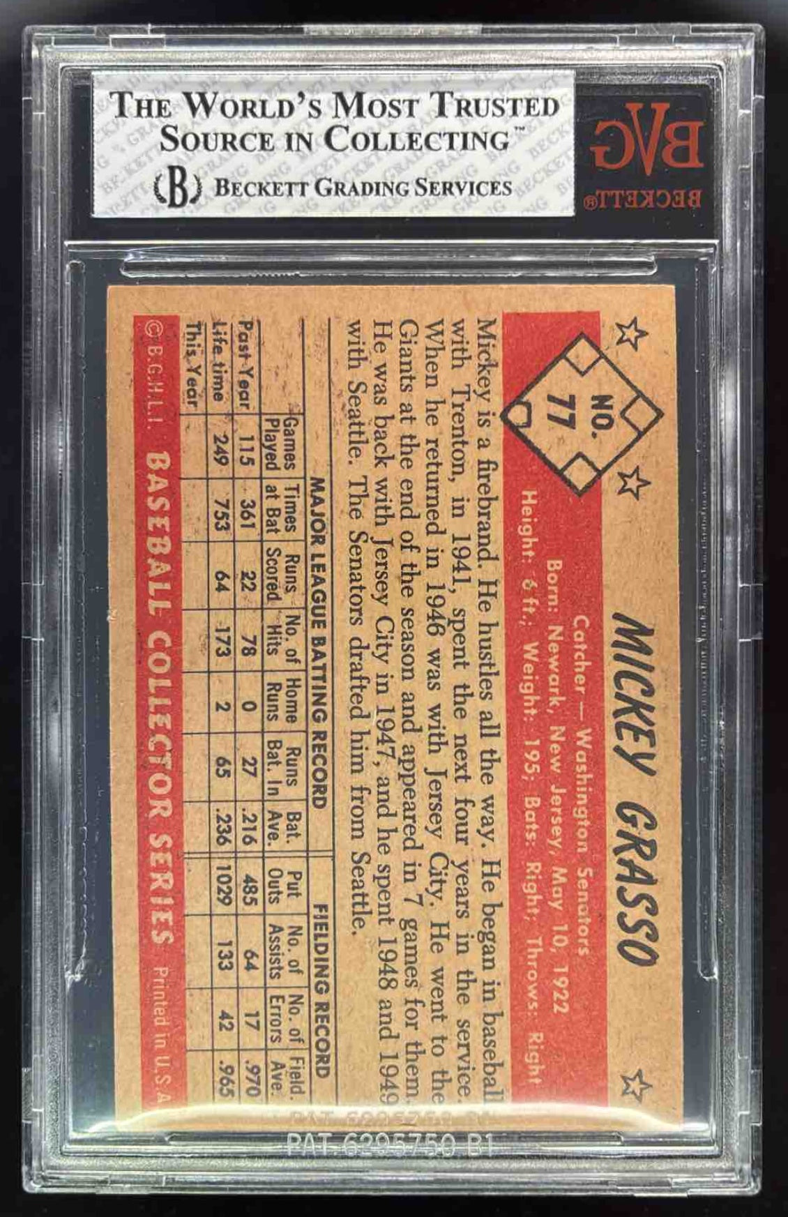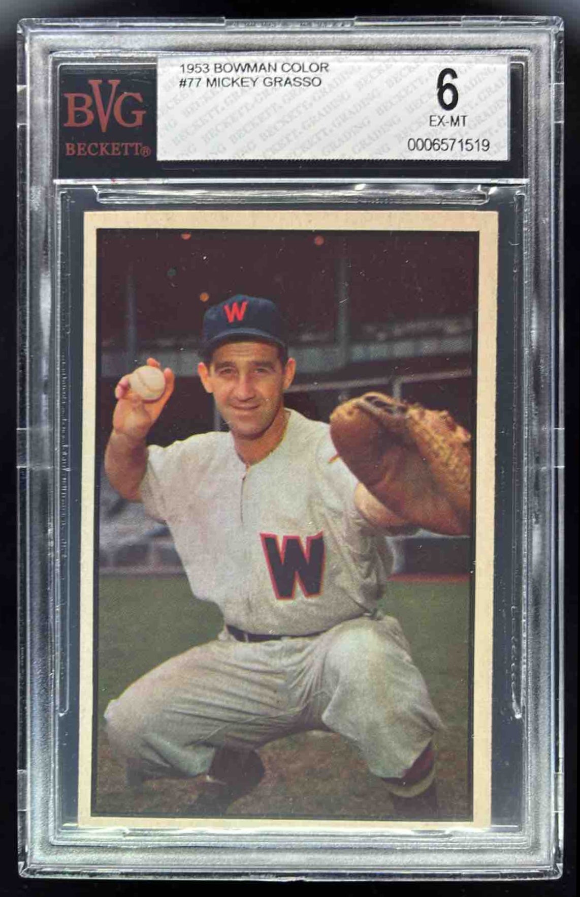 1953 Bowman Color #77 Mickey Grasso BGS 6