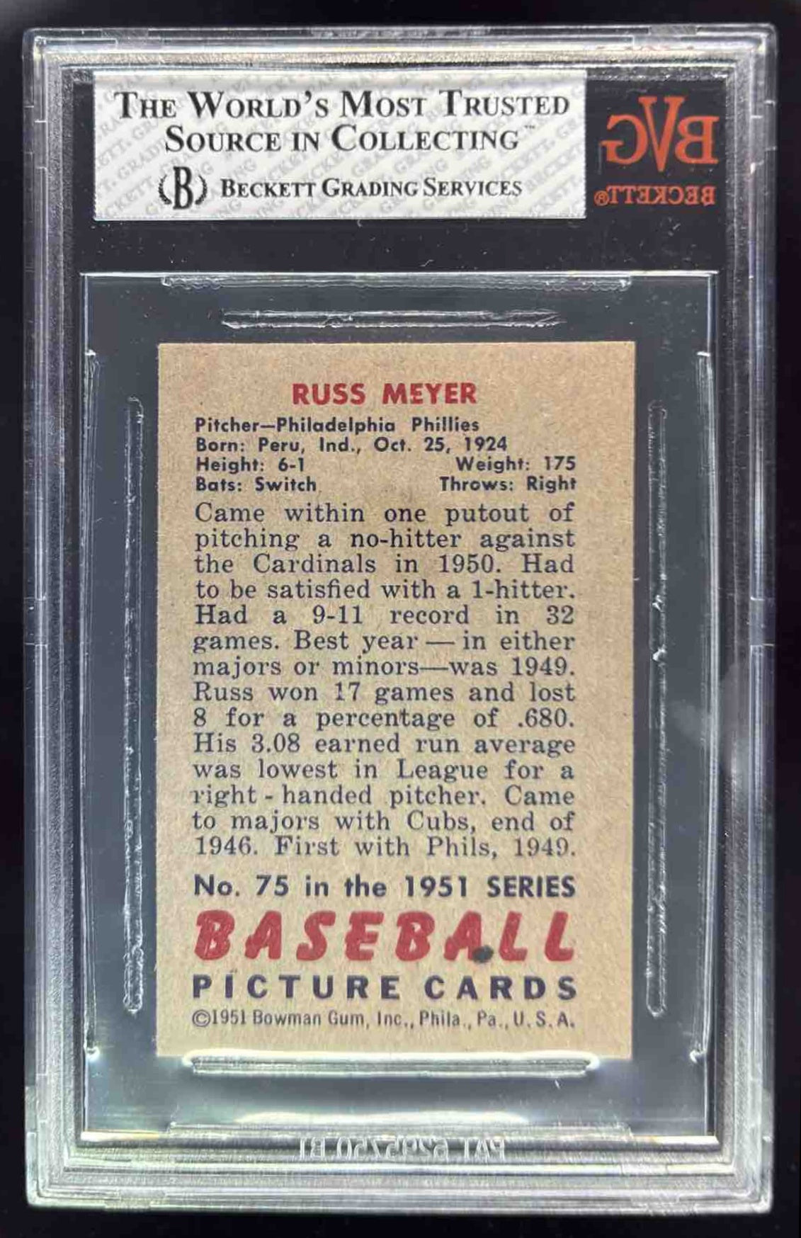 1951 Bowman #75 Russ Meyer RC BGS 6.5