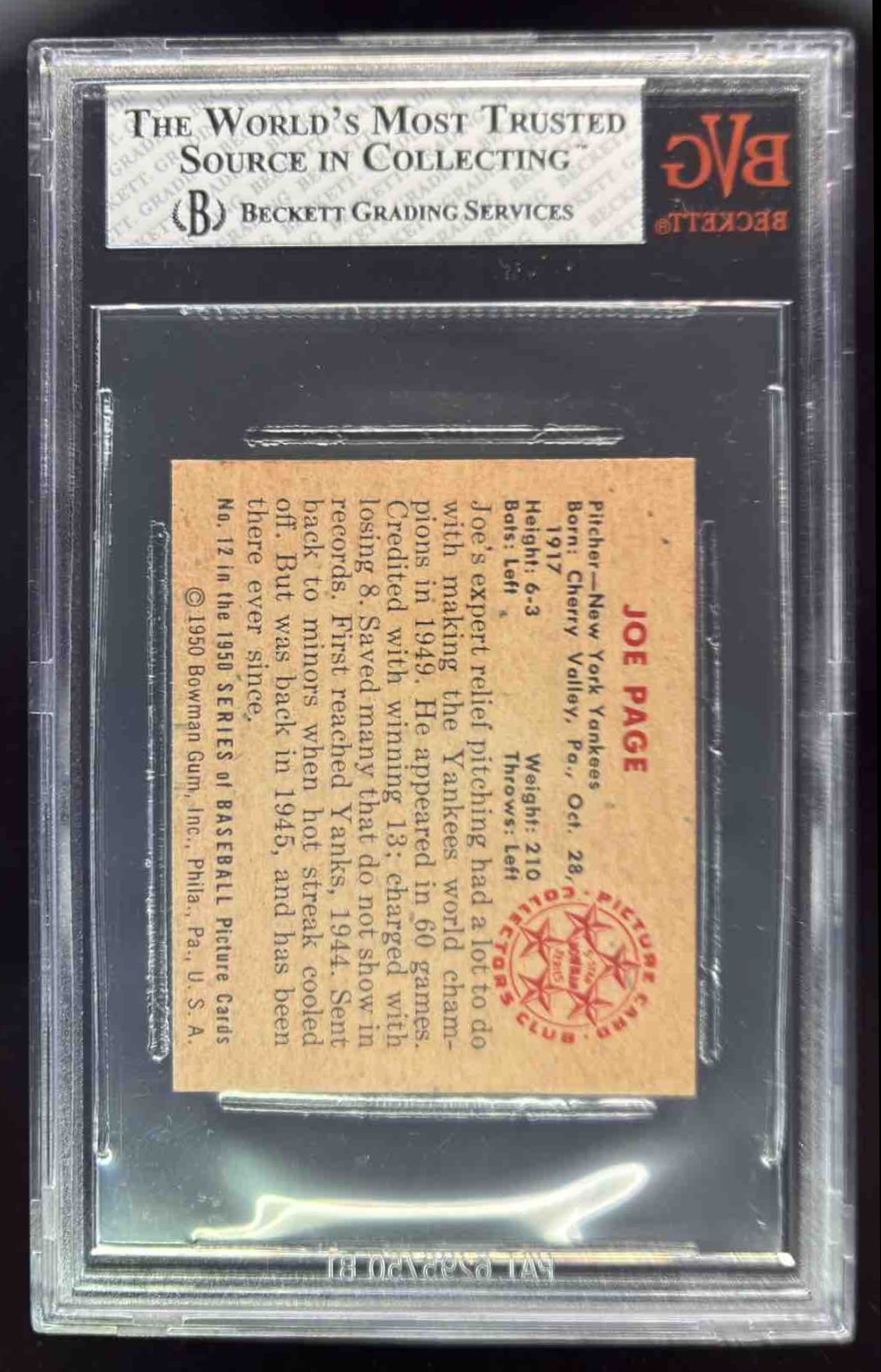 1950 Bowman #12 Joe Page BGS 7