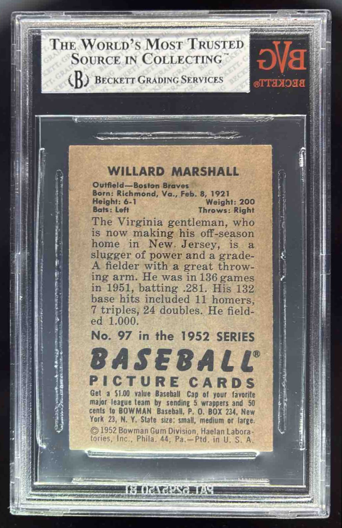 1952 Bowman #97 Willard Marshall BGS 7