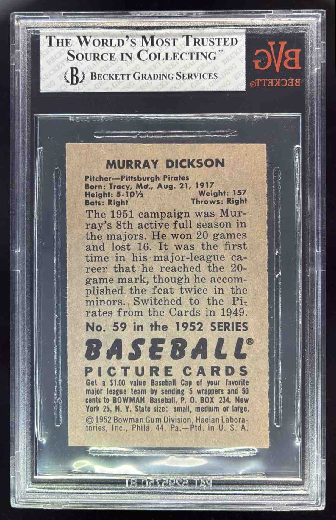 1952 Bowman #59 Murry Dickson UER BGS 7