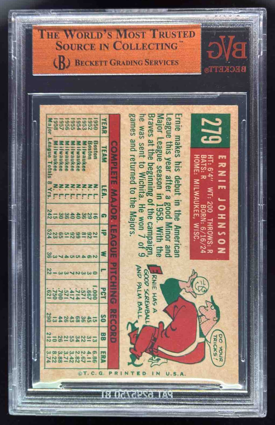1959 Topps #279a Ernie Johnson Authentic Rookie VAR BGS 7.5