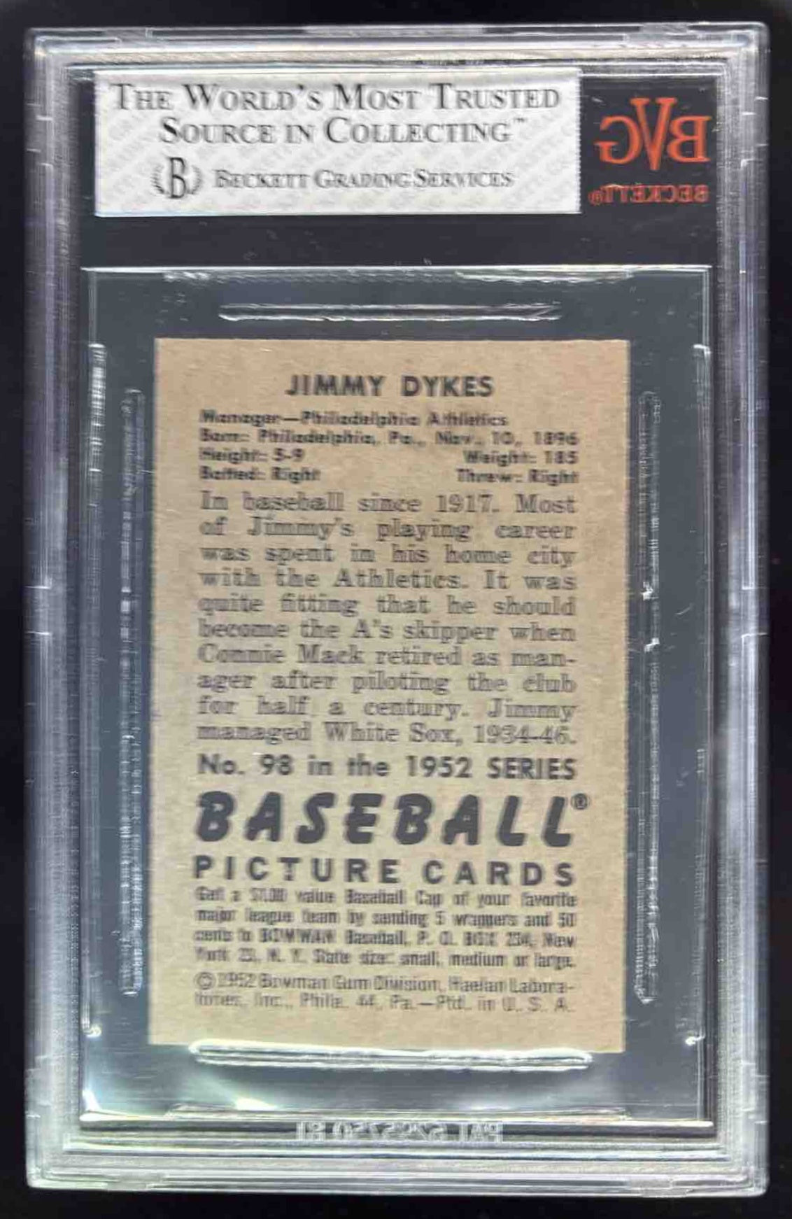 1952 Bowman #98 Jimmie Dykes BGS 8