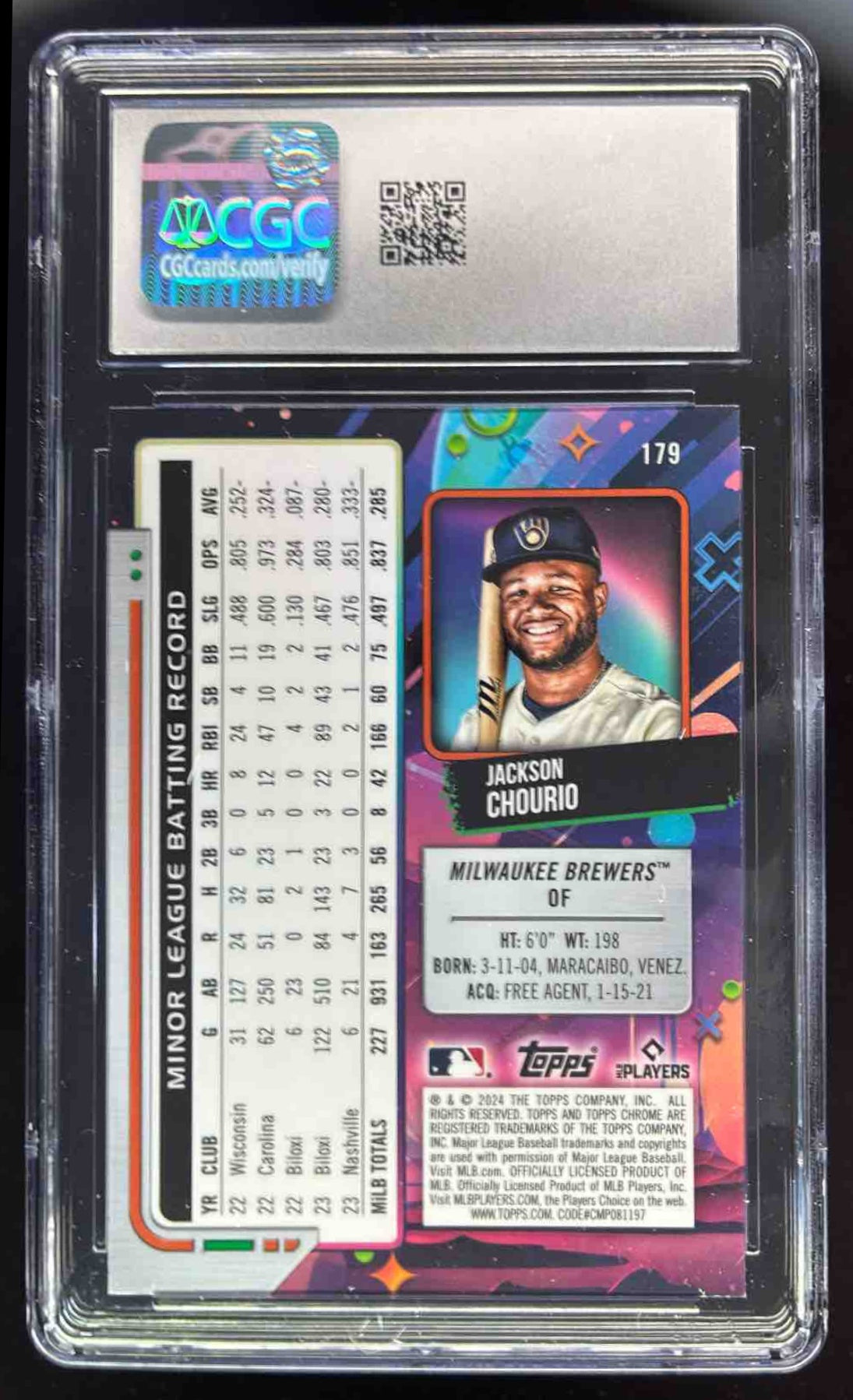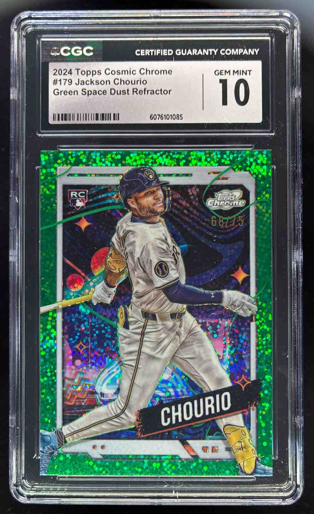 2024 Topps Cosmic Chrome Green Space Dust #179 Jackson Chourio RC /75 CGC 10