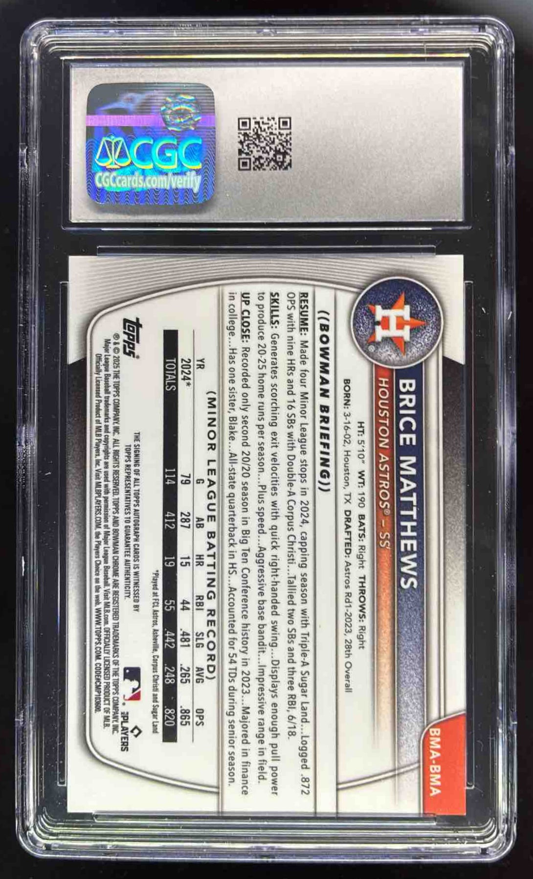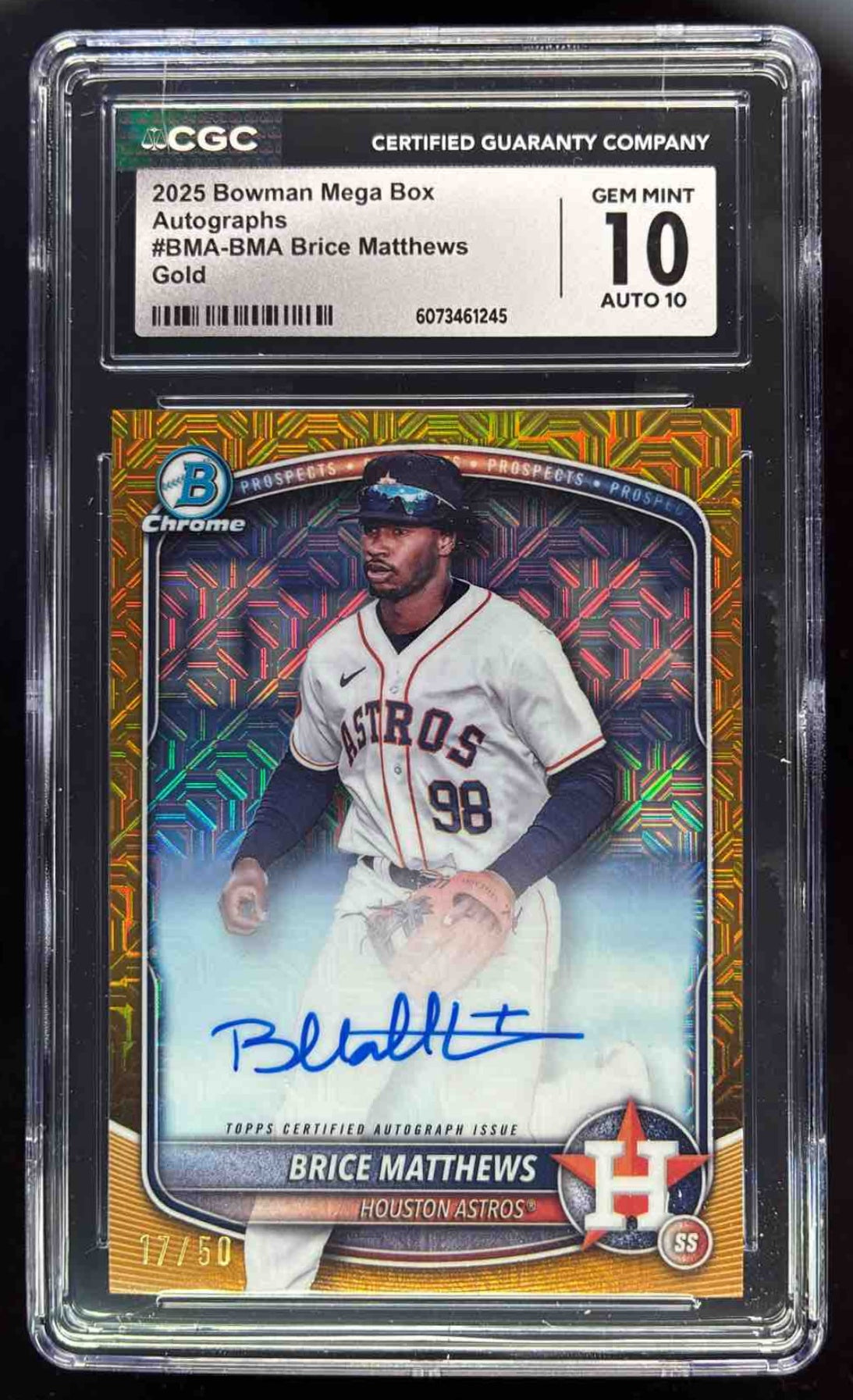 2025 Bowman Chrome Mega Box Gold Refractors Brice Matthews Auto /50 CGC 10