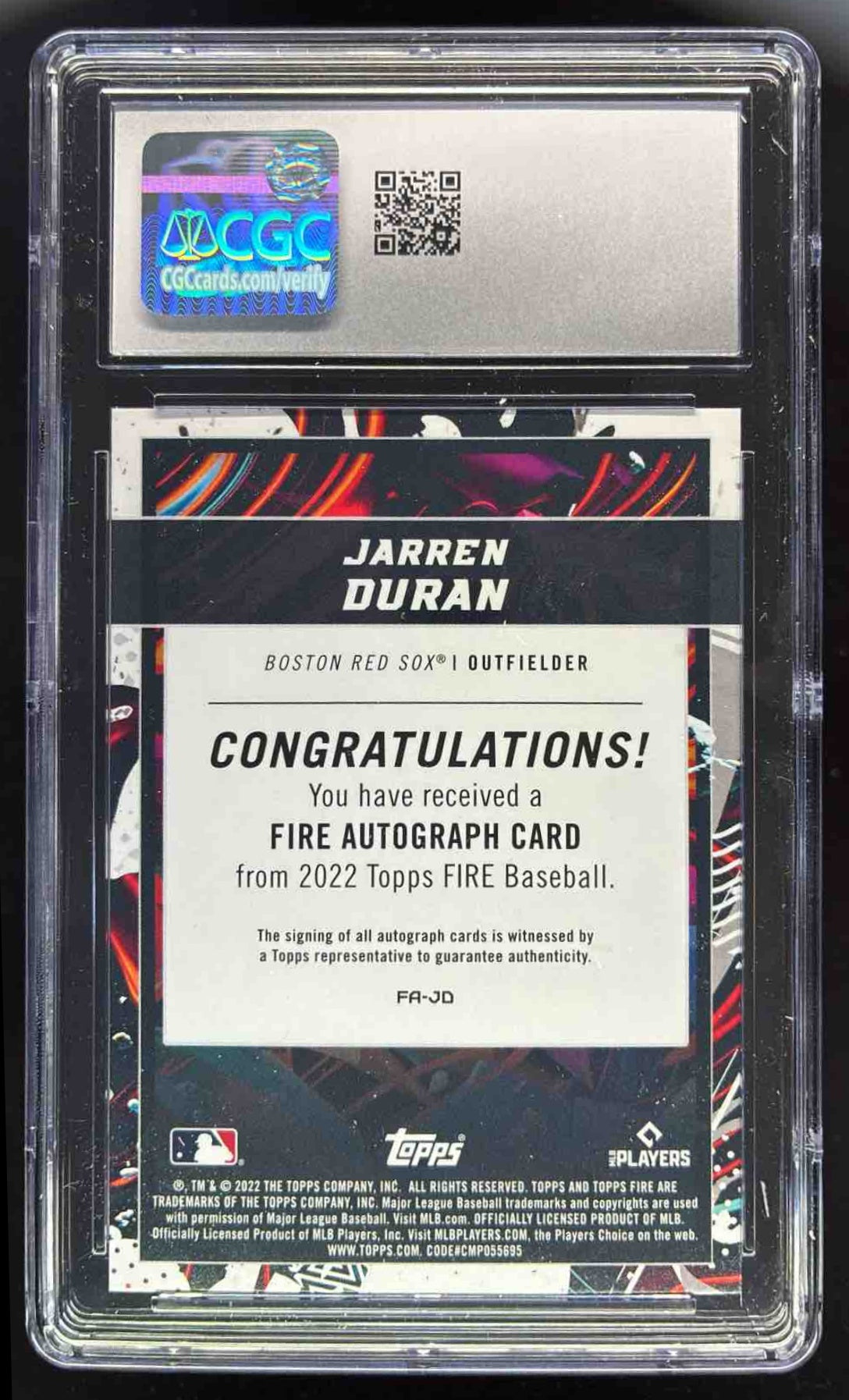 2022 Topps Fire Autographs #FA-JD Jarren Duran Autograph RC Auto CGC 10