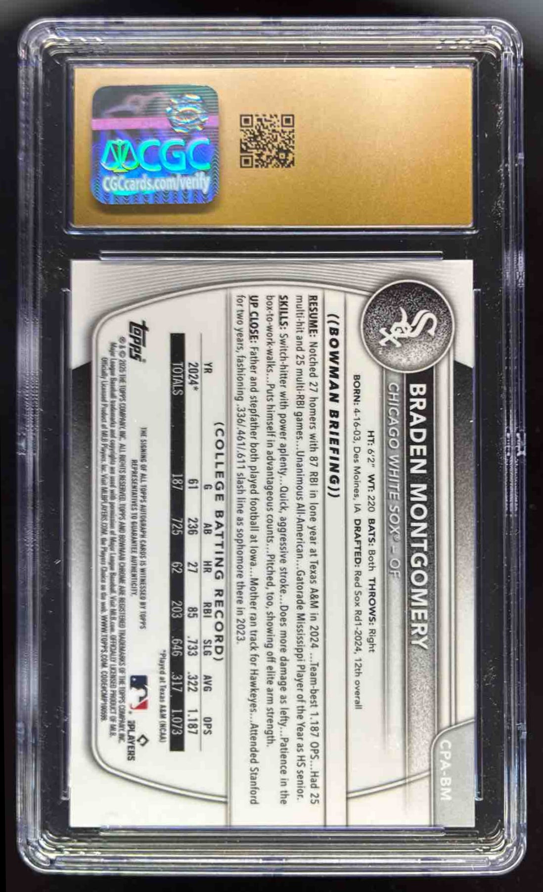 2025 Bowman Chrome Autograph Purple Refractor Braden Montgomery Auto /250 CGC 10