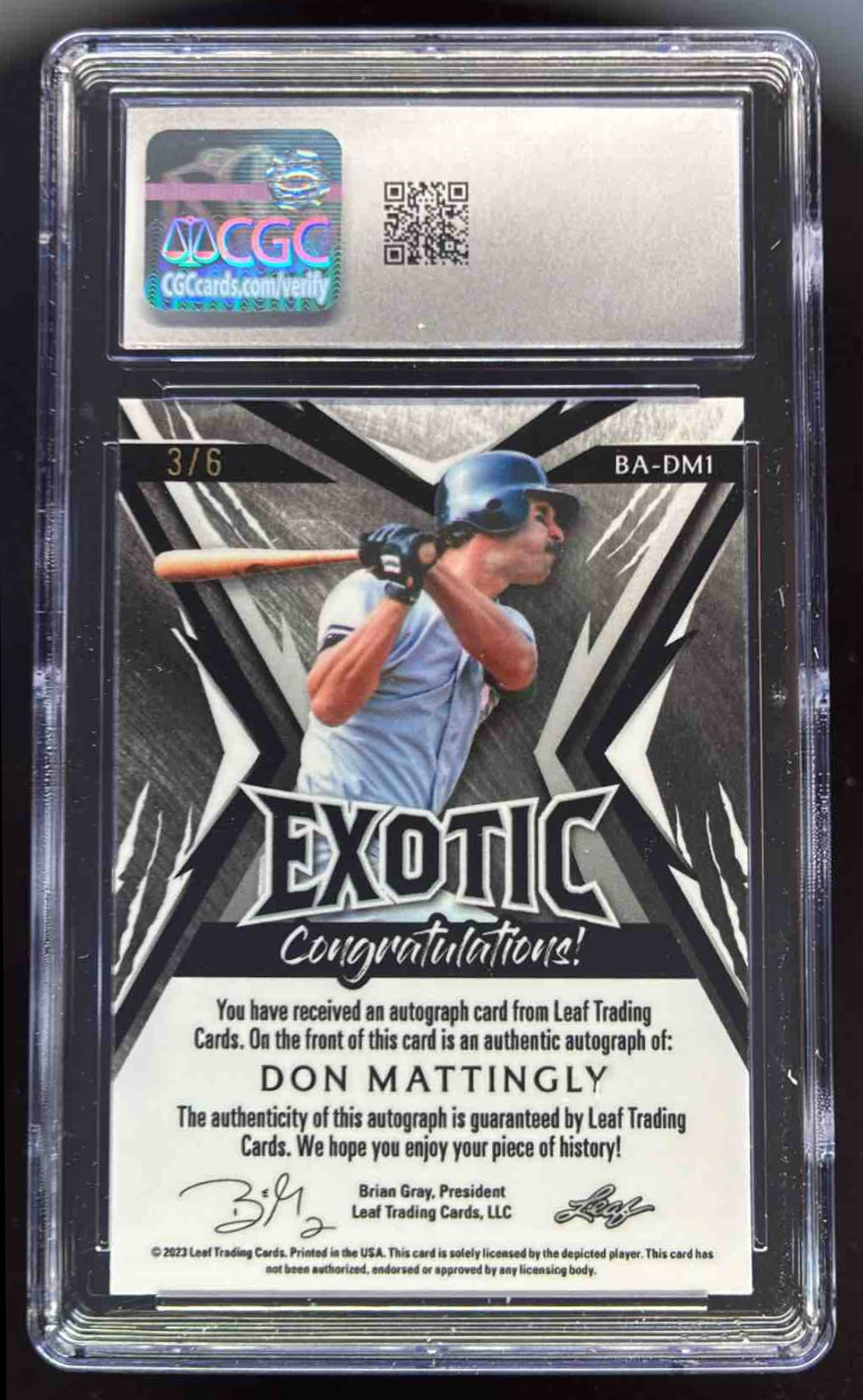 2023 Leaf Exotic Autographs Kaleidoscope Parrot Don Mattingly Auto /6 CGC 10