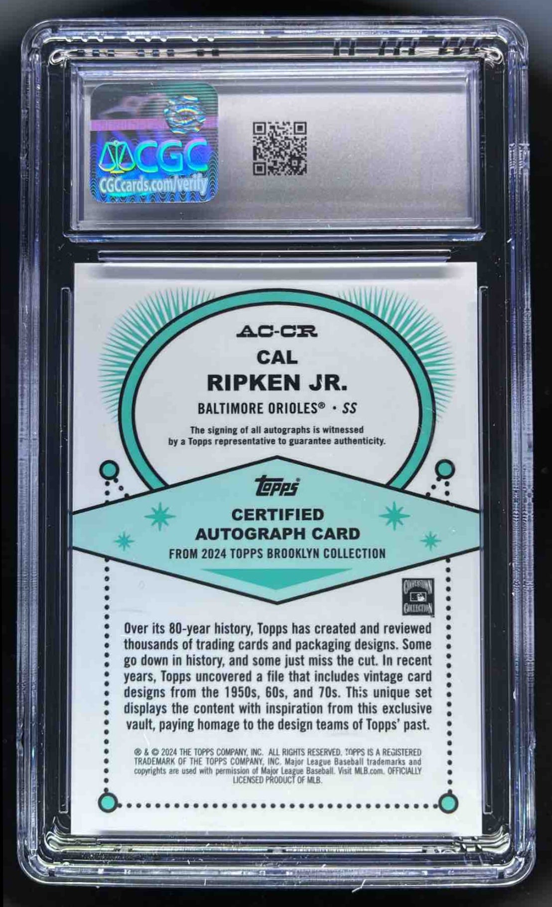 2024 Topps Brooklyn Collection Autographs #AC-CR Cal Ripken Jr. Auto /99 CGC 10