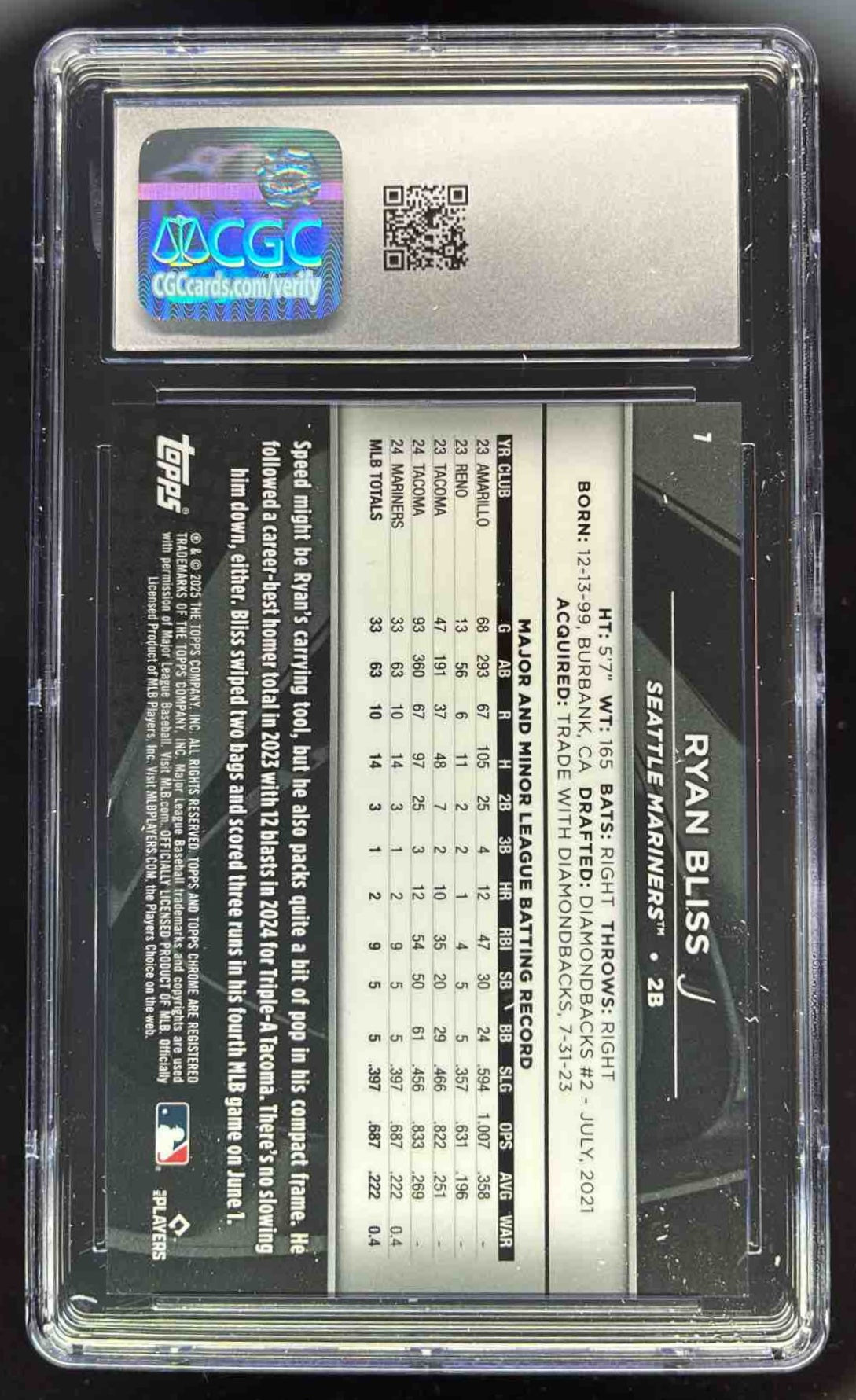 2025 Topps Chrome Black Rookie Design Variations Red #7 Ryan Bliss RC /5 CGC 10