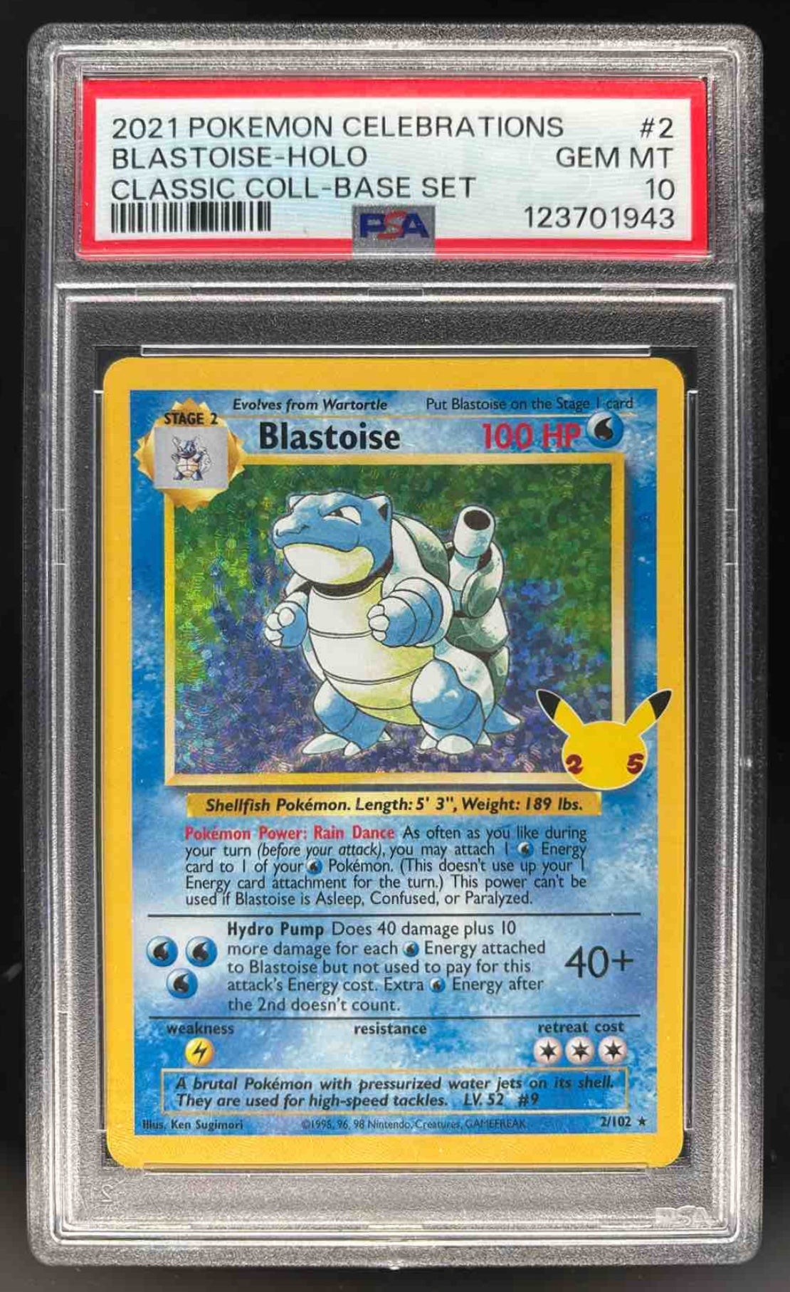 2021 Pokemon Sword & Shield Celebrations Classic Collection #2 Blastoise PSA 10