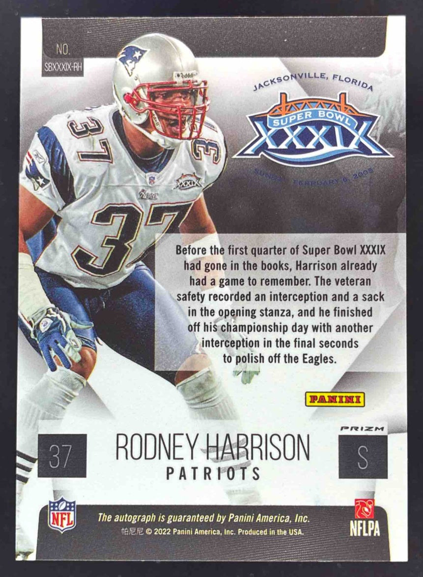 2022 Panini Super Bowl XXXIX Autograph Rodney Harrison Auto