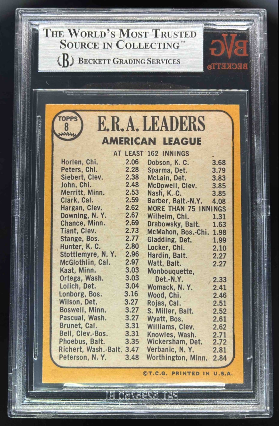 1968 Topps #8 American League Joe Horlen Gary Peters Sonny Siebert BGS 9