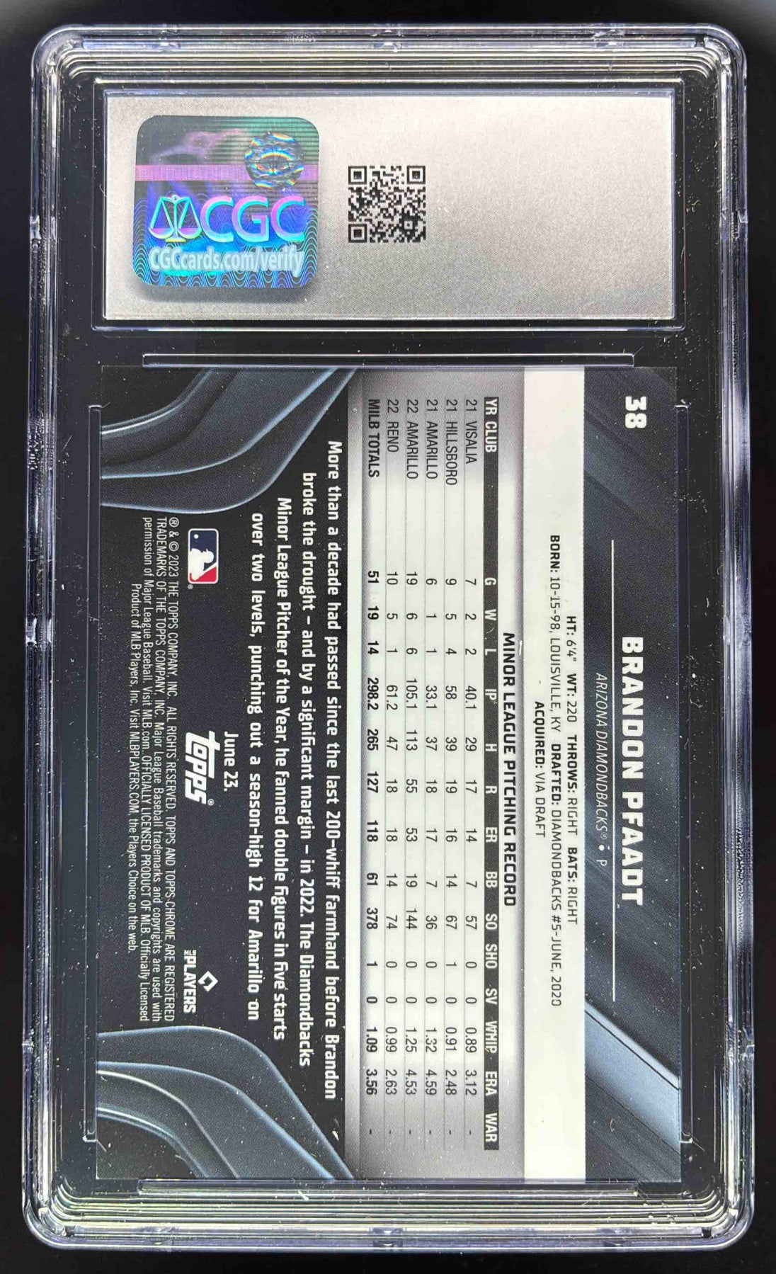 2023 Topps Chrome Black Red Refractor #38 Brandon Pfaadt RC /5 CGC 10