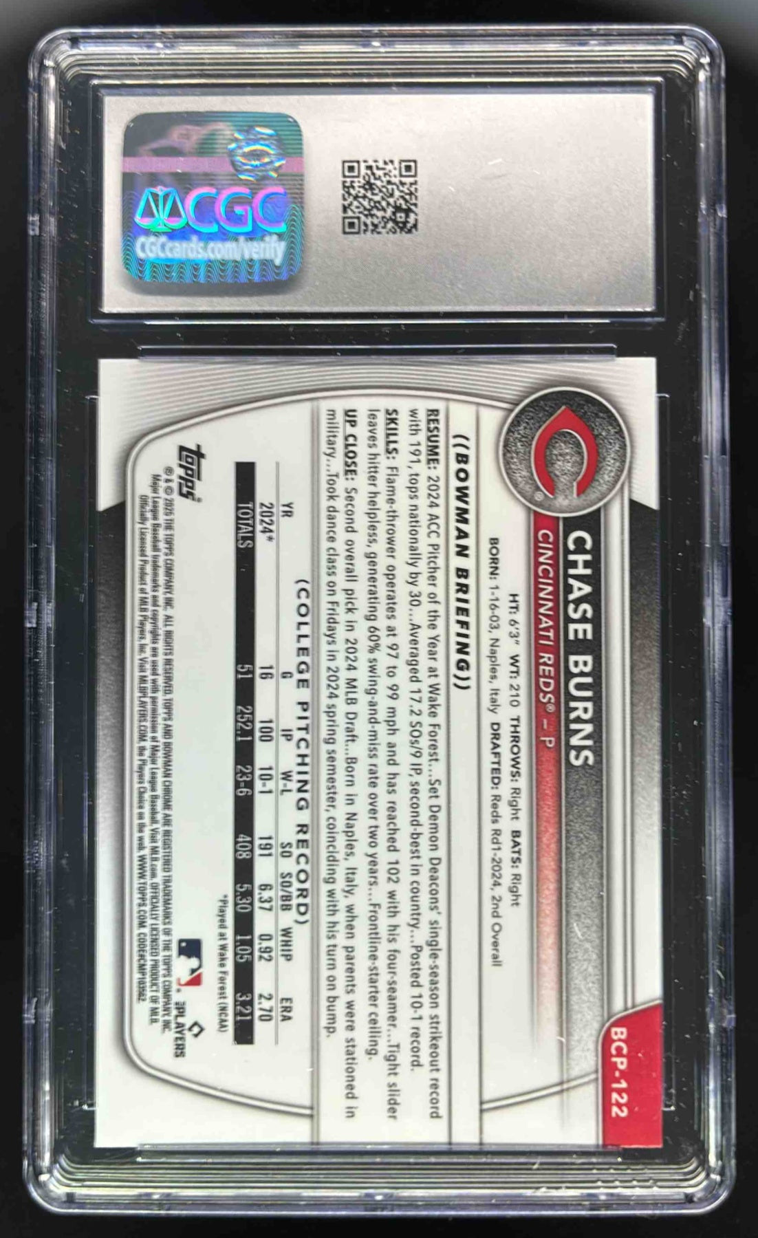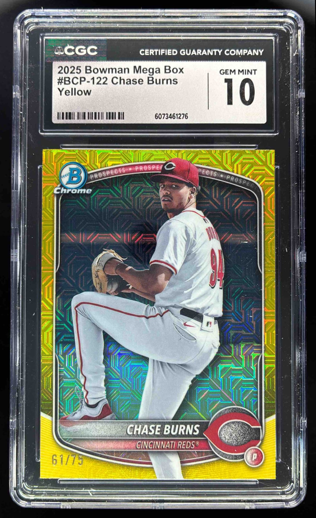 2025 Bowman Chrome Mega Box Yellow Refractors #BCP-122 Chase Burns /75 CGC 10