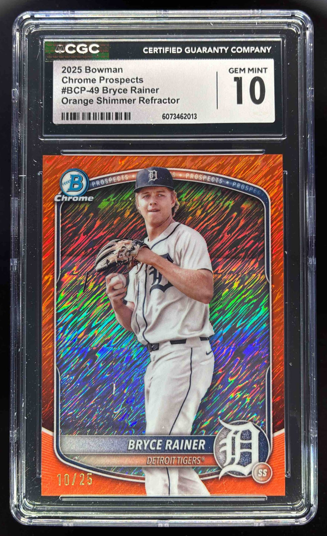 2025 Bowman Chrome Orange Shimmer Refractor #BCP-49 Bryce Rainer /25 CGC 10