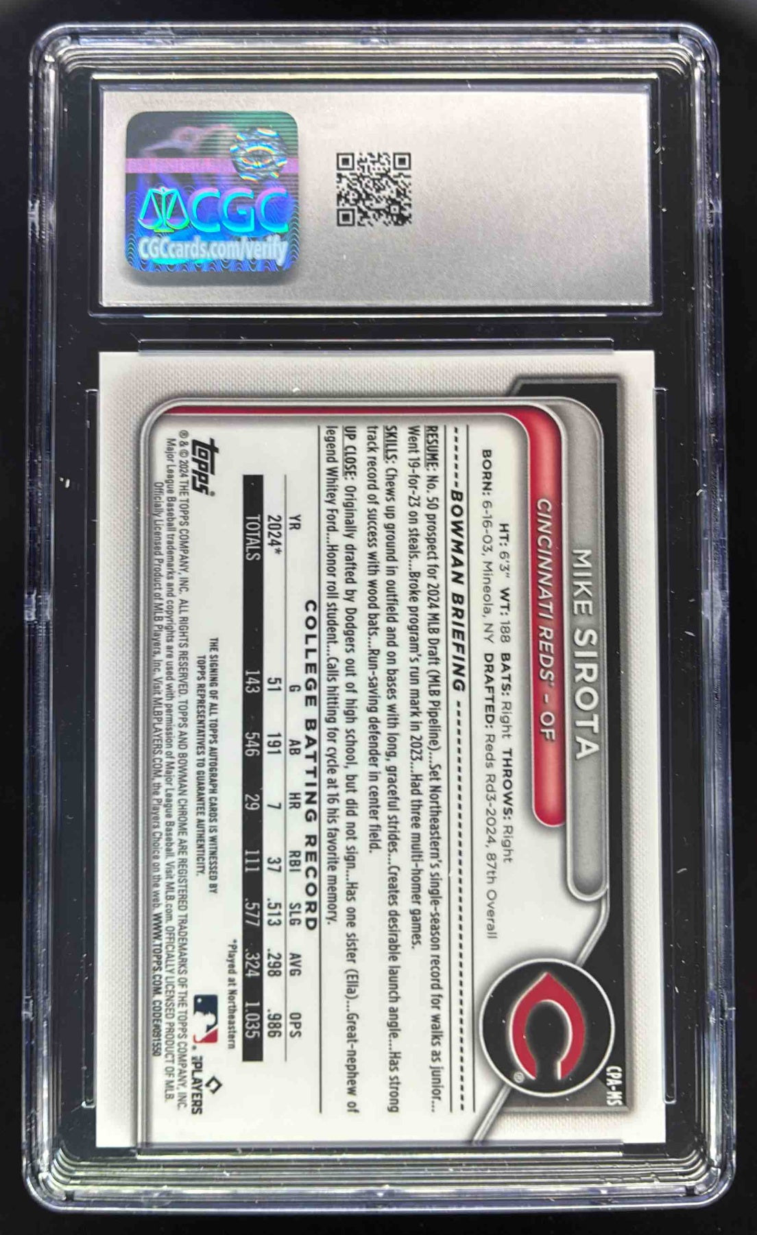 2024 Bowman Draft Chrome Autographs #CPA-MS Mike Sirota RC Auto CGC 10