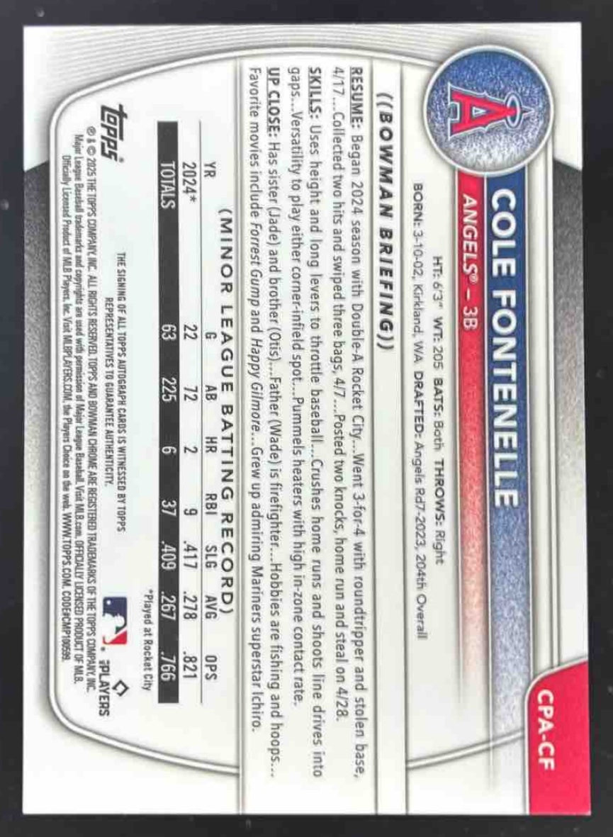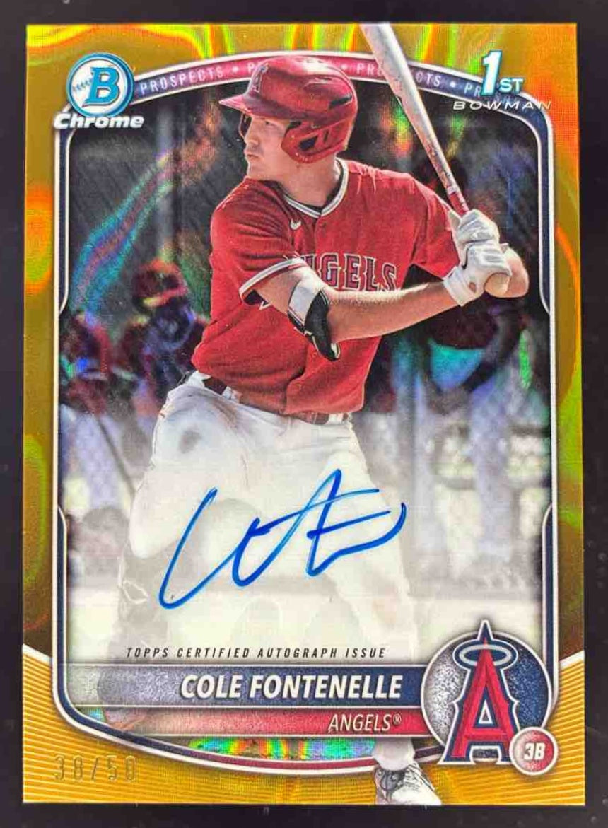 2025 Bowman Chrome Autographs Gold Lava Refractor Cole Fontenelle RC Auto /50