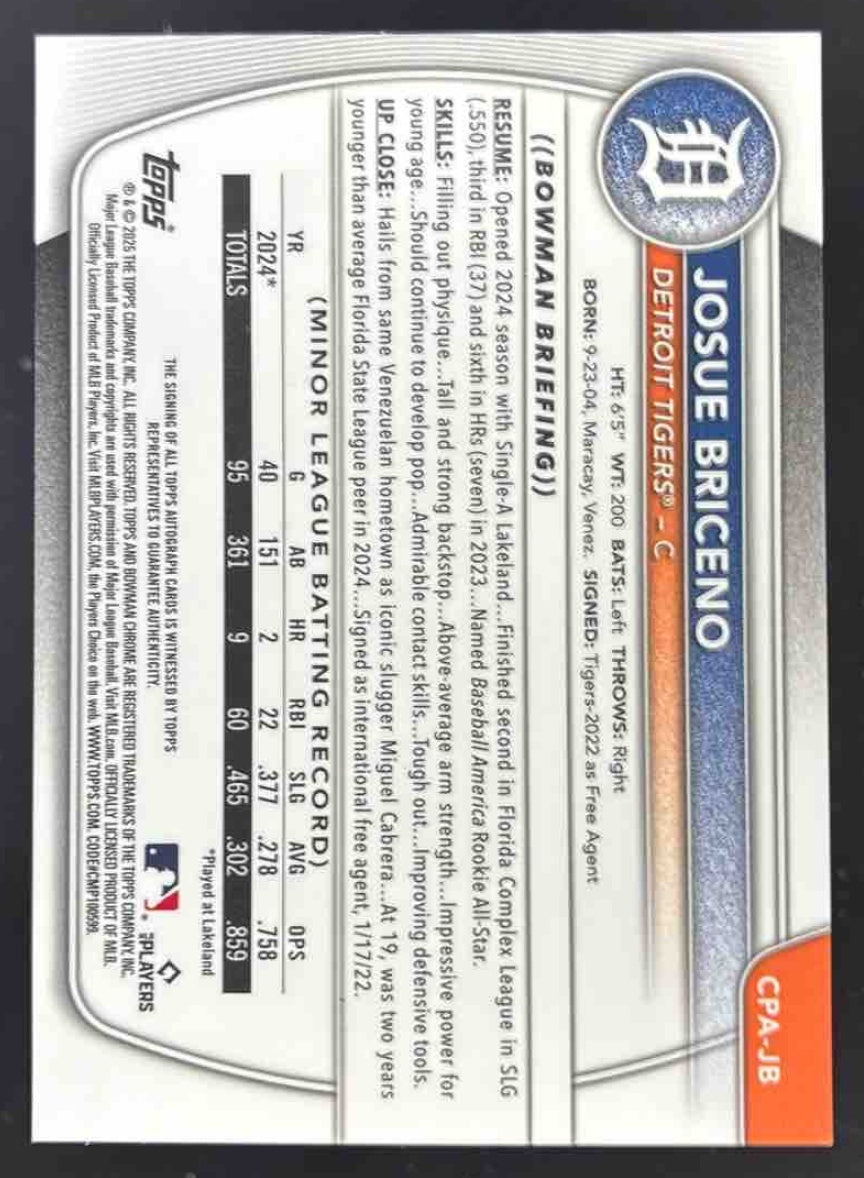 2025 Bowman Chrome Autographs #CPA-JB Josue Briceno RC Auto